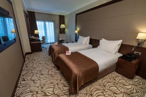 Les équipements incluent des forfaits Spa/Bien‑être, bain turc/hammam (gratuit), spa (gratuit), sauna (gratuit), salle de vapeur, centre de fitness (gratuit), wifi (gratuit), restaurant, bar, réception 24h/24, chambres non‑fumeur, chambres insonorisées, climatisation, articles de toilette gratuits, bidet et service d’étage. Le parking sur place et le parking privé sont disponibles moyennant des frais supplémentaires ; le service de navette et la navette aéroport sont en supplément ; les installations pour réunions/banquets entraînent des frais supplémentaires.